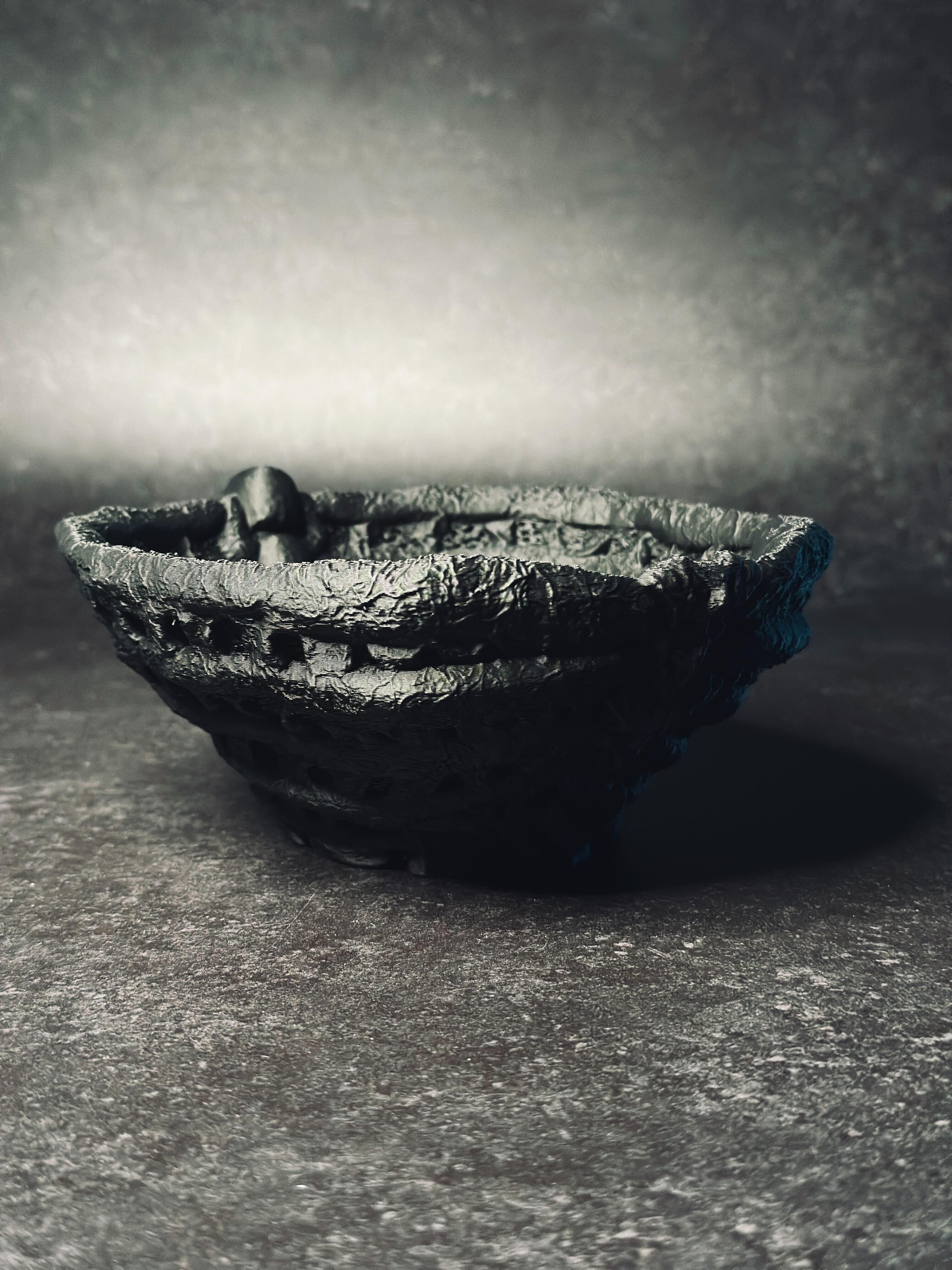 植物という“生”をこの器に植えることで、死と生、静と動、終焉と再生のコントラストが浮かび上がり、初めて作品として完成します。