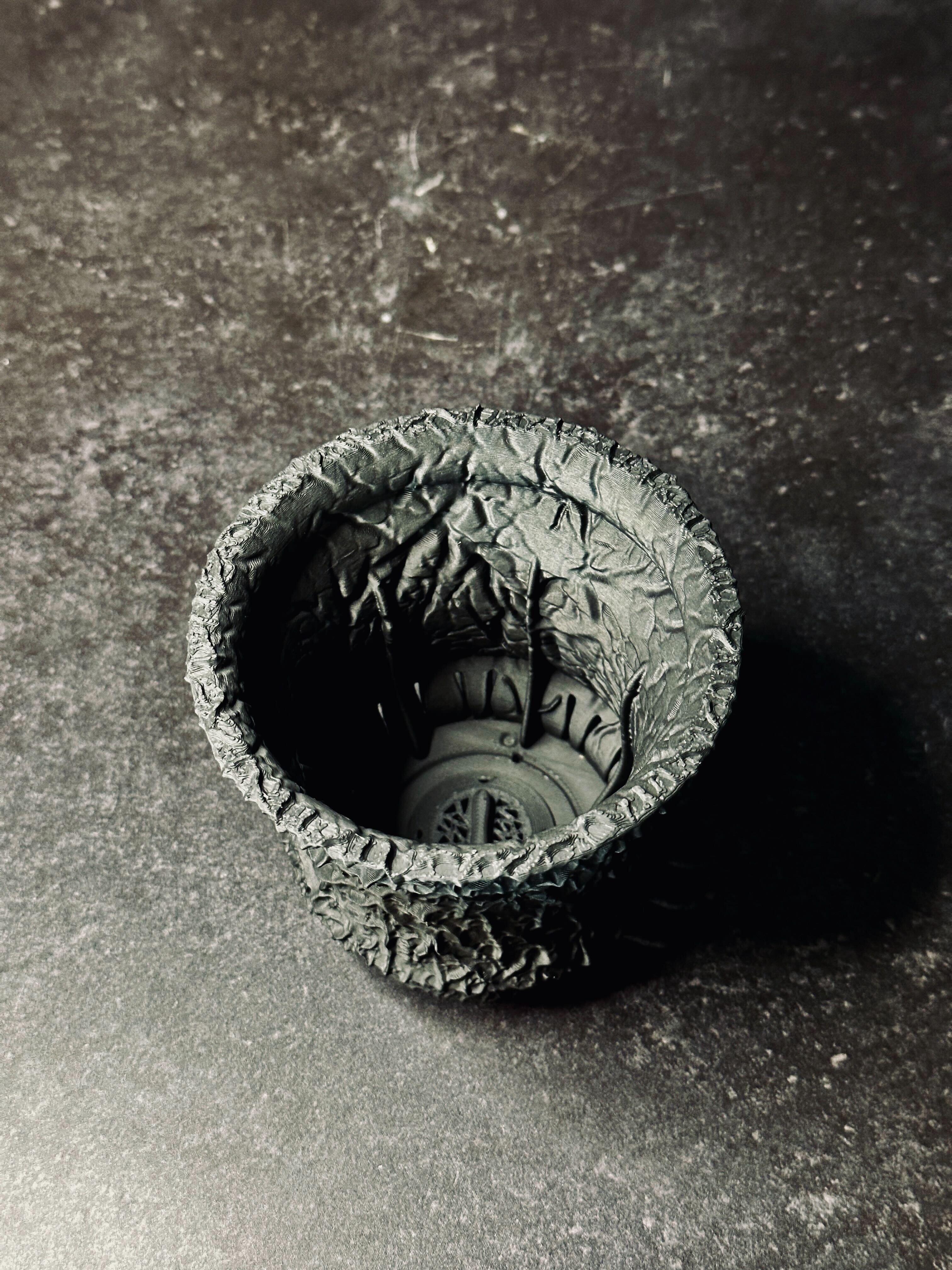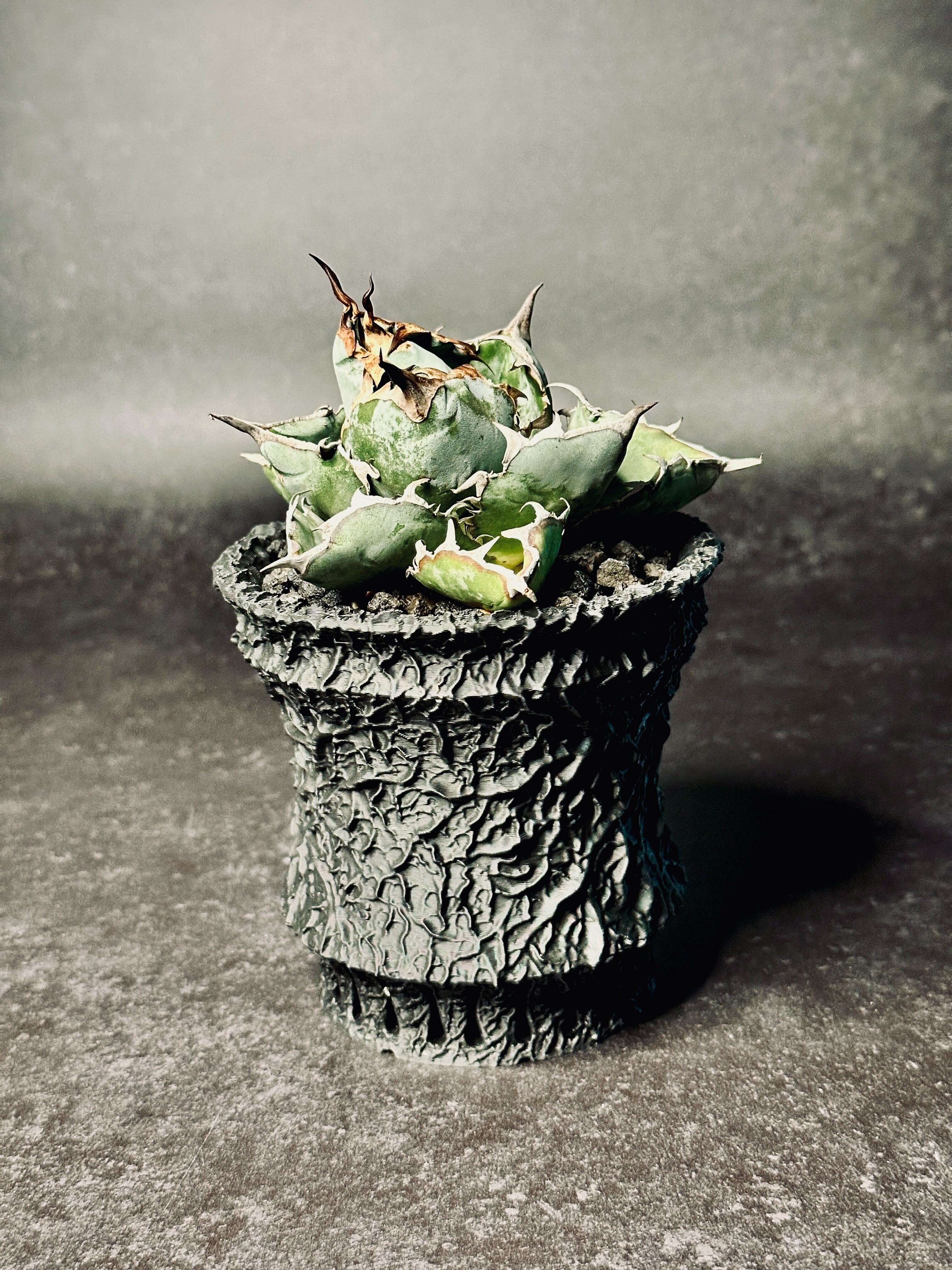 全体に張り巡らされた血管テクスチャが、強烈な存在感を放つ鉢。