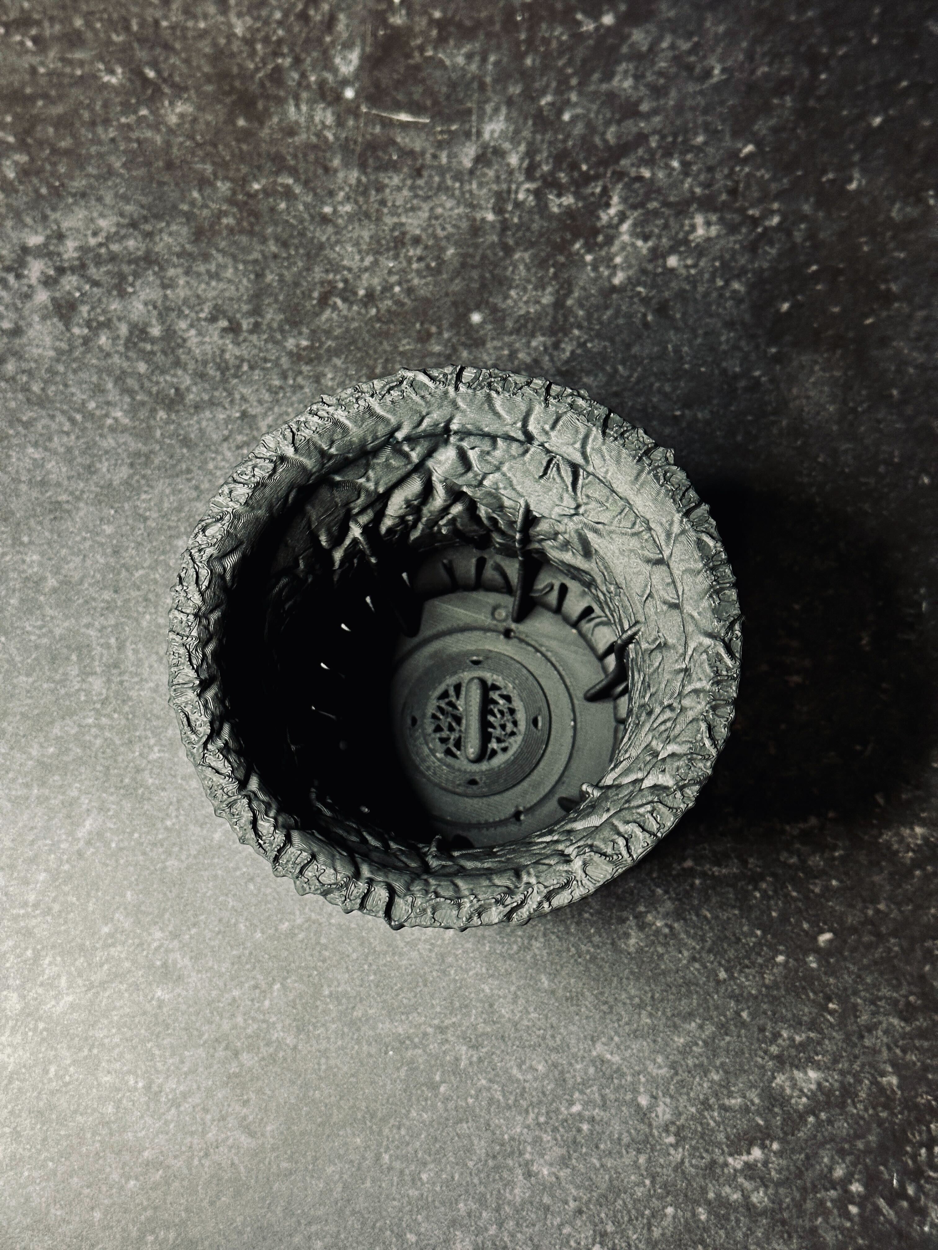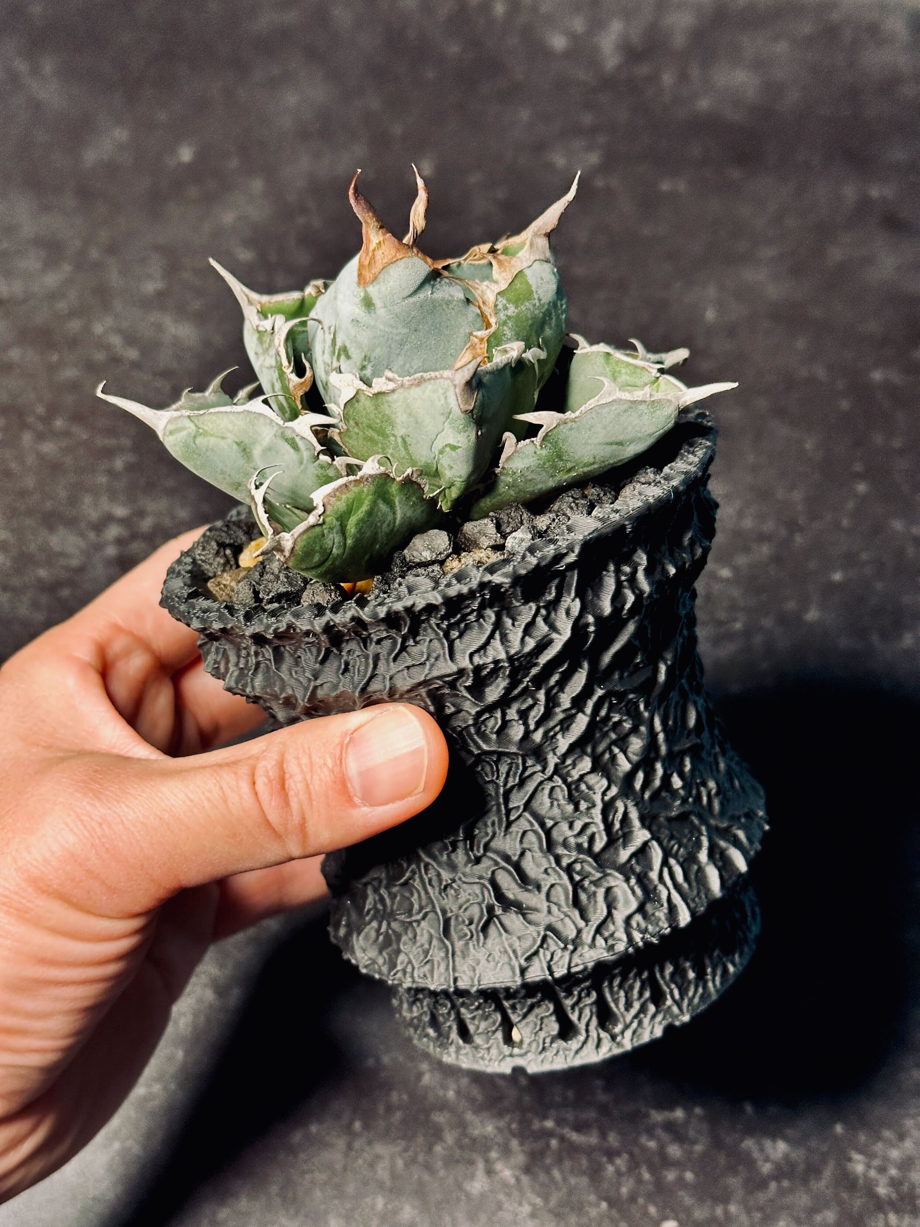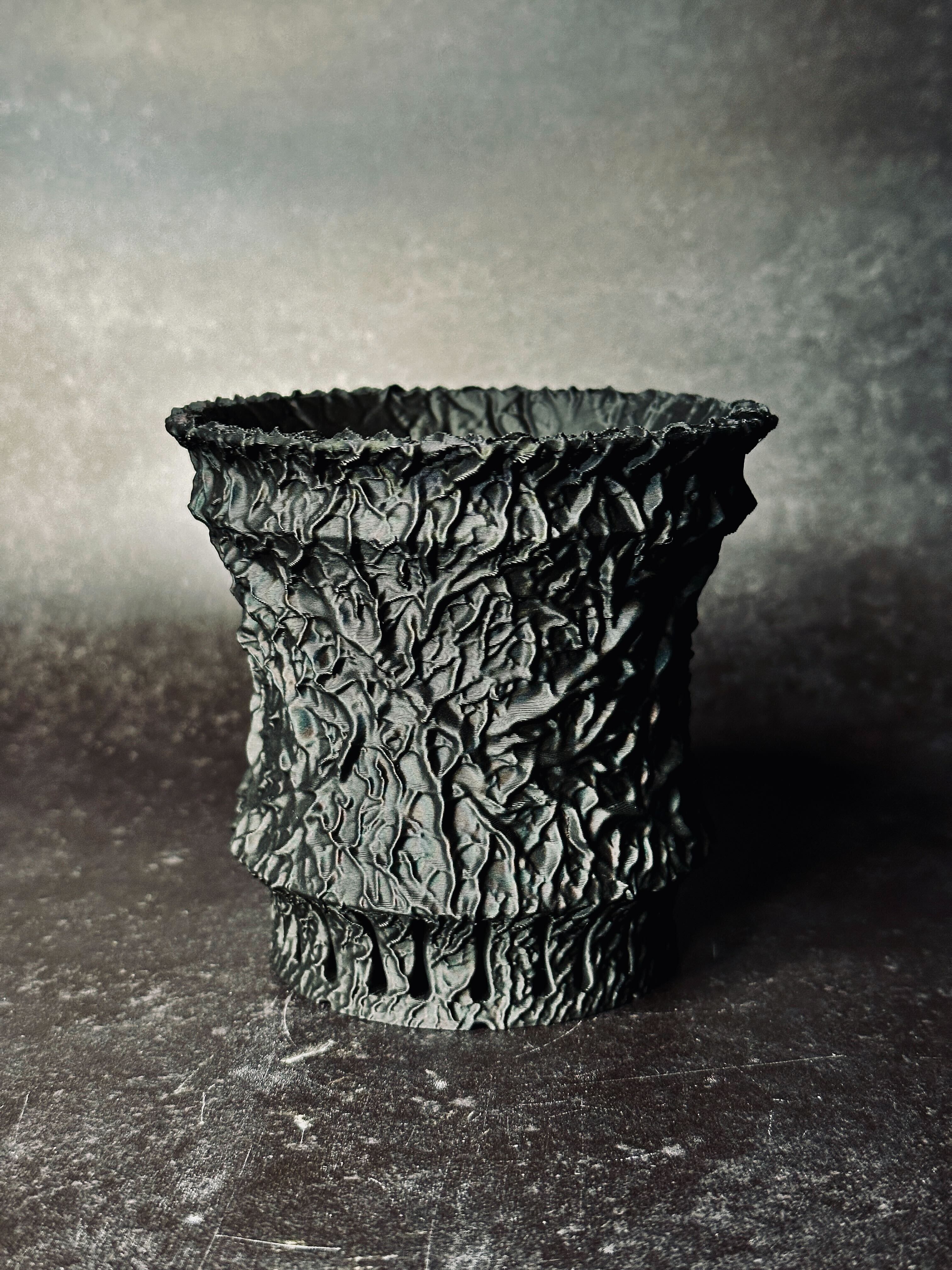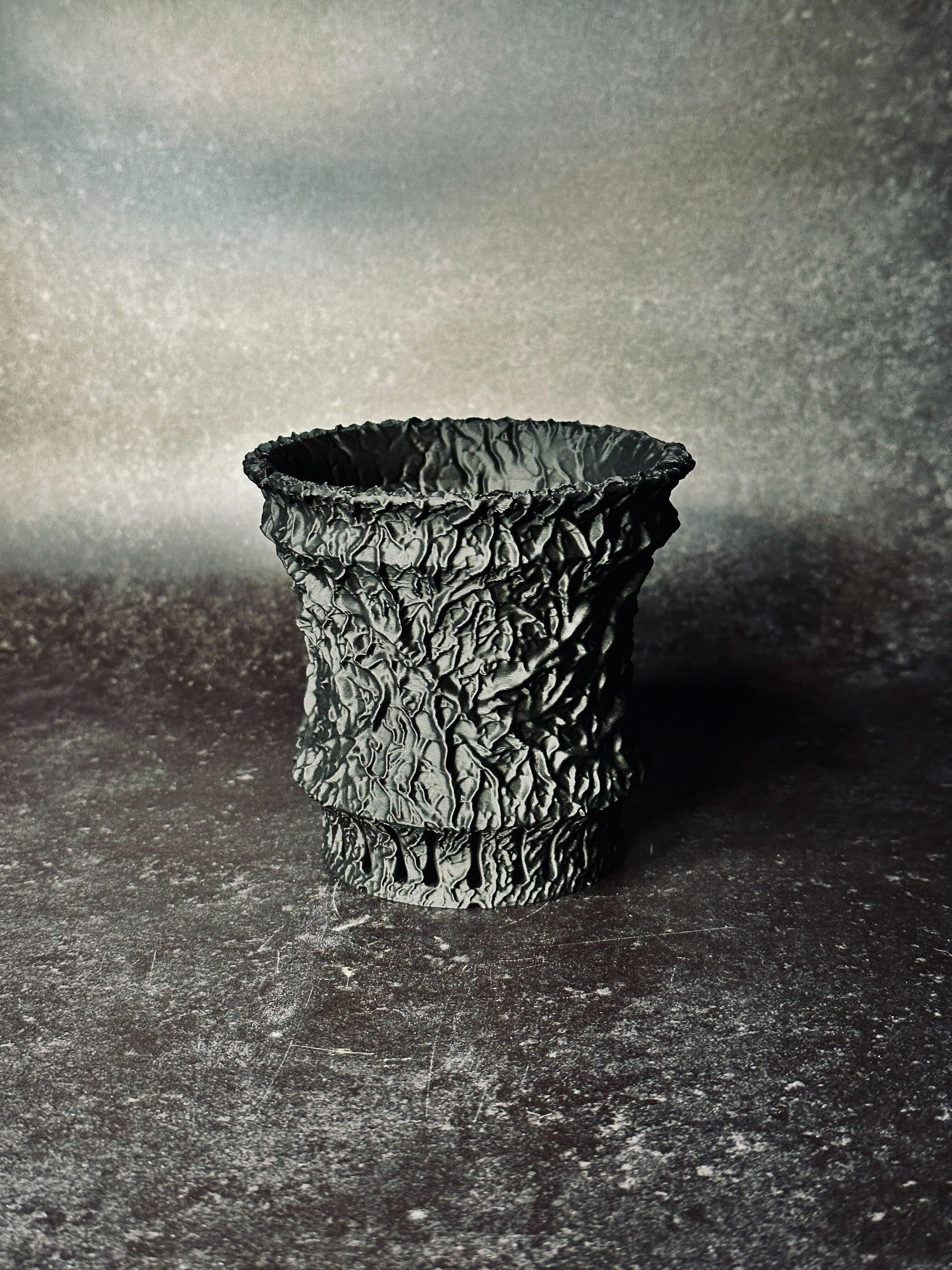 全体に張り巡らされた血管テクスチャが、強烈な存在感を放つ鉢。