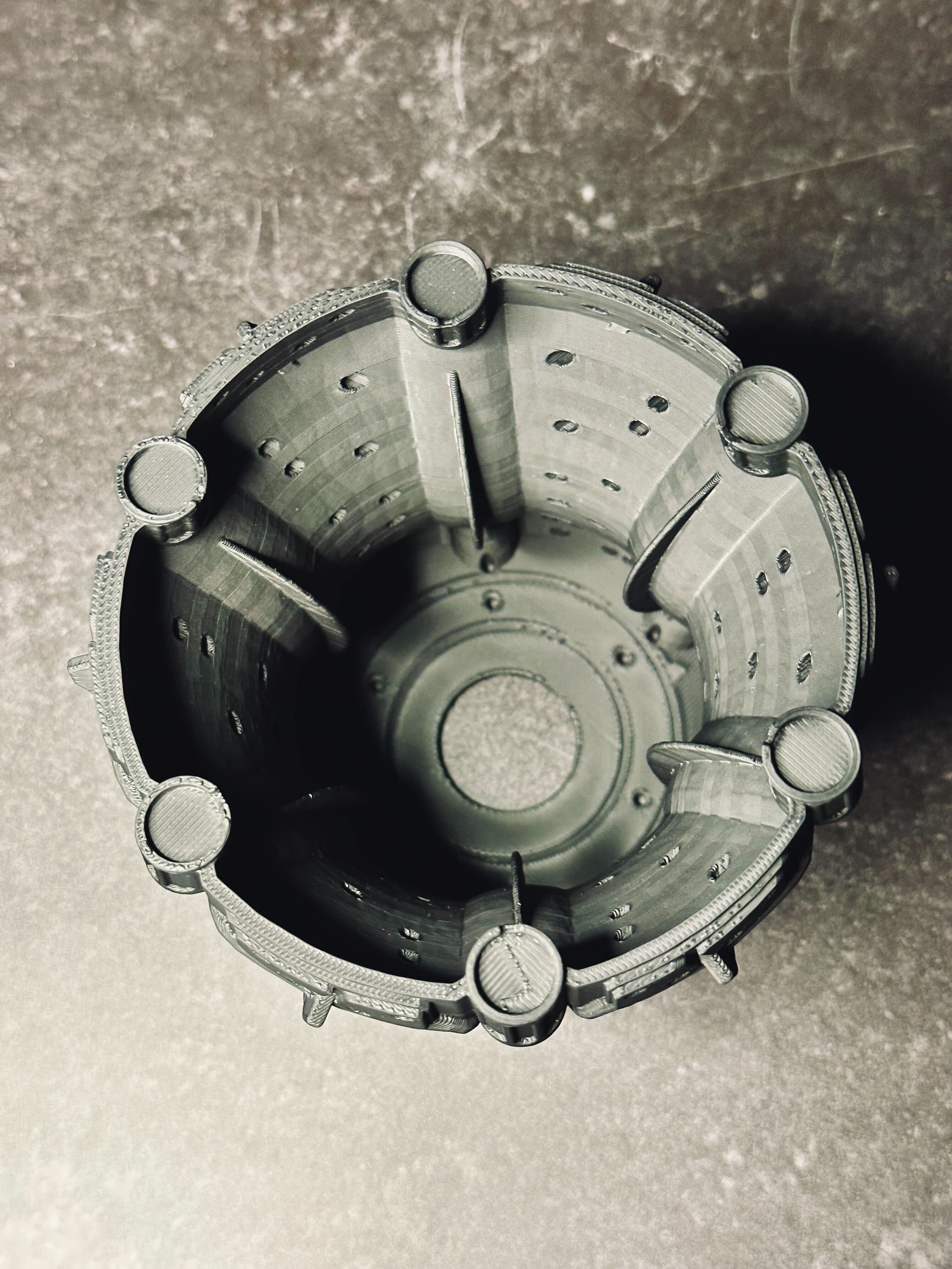 特筆すべきは、鉢全体を這うように巡らされた複雑なパイプライン。
